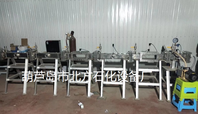 4、測試段:由五段組成,可自由組合,每個測試段都有進氣管路將氣體輸入測試段,每個測試段水平線中間部位安裝對視觀測窗口,觀測窗口可視部分φ30mm,每個測試段上安裝3個傳感器。,